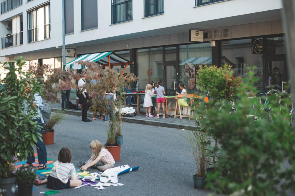 Z ozelenitvijo, mobilnim urbanim pohištvom, umetniškimi intervencijami in delavnicami – od izdelave talnega kolaža do merilcev kakovosti zraka v lastni režiji – je prostor zaživel na povsem nov način. Poseben element je bila tudi zvočna instalacija ptičjega petja, ki je prostor dodatno umirila in obiskovalce vabila k zadrževanju. Več kot 250 obiskovalcev je skozi druženje, ustvarjanje in večerni koncert izkusilo, kako lahko že taki posegi prispevajo k bolj povezanim, zdravim in prijetnim soseskam ter spodbujajo medgeneracijsko povezovanje. Projekt je odprl razmislek o trajnih spremembah v smeri umirjanja prometa in večje vloge skupnosti pri oblikovanju javnega prostora.